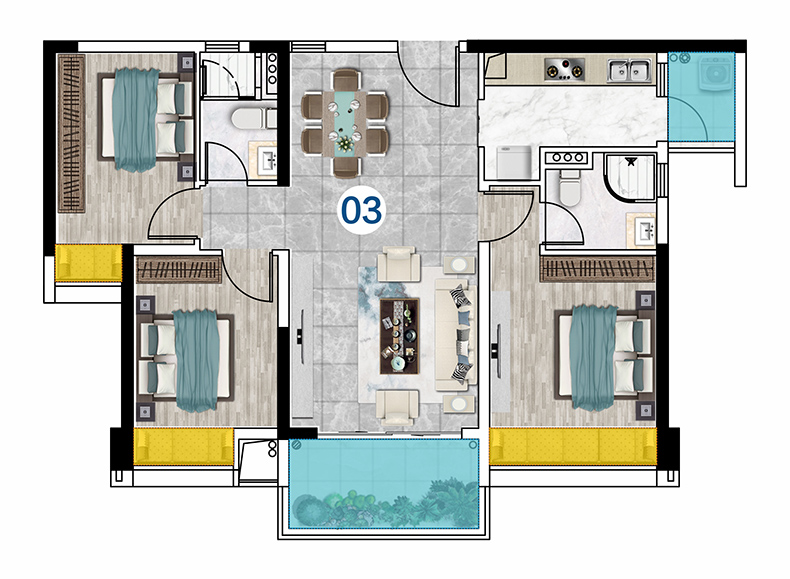 建筑面积约89-140㎡ 三-四房精装匠品,临江递进式布局,确保江景入户,约7米景观阳台,开阔视野,大尺开间,N+1高赠送空间,品质精装,畅享质感生活。